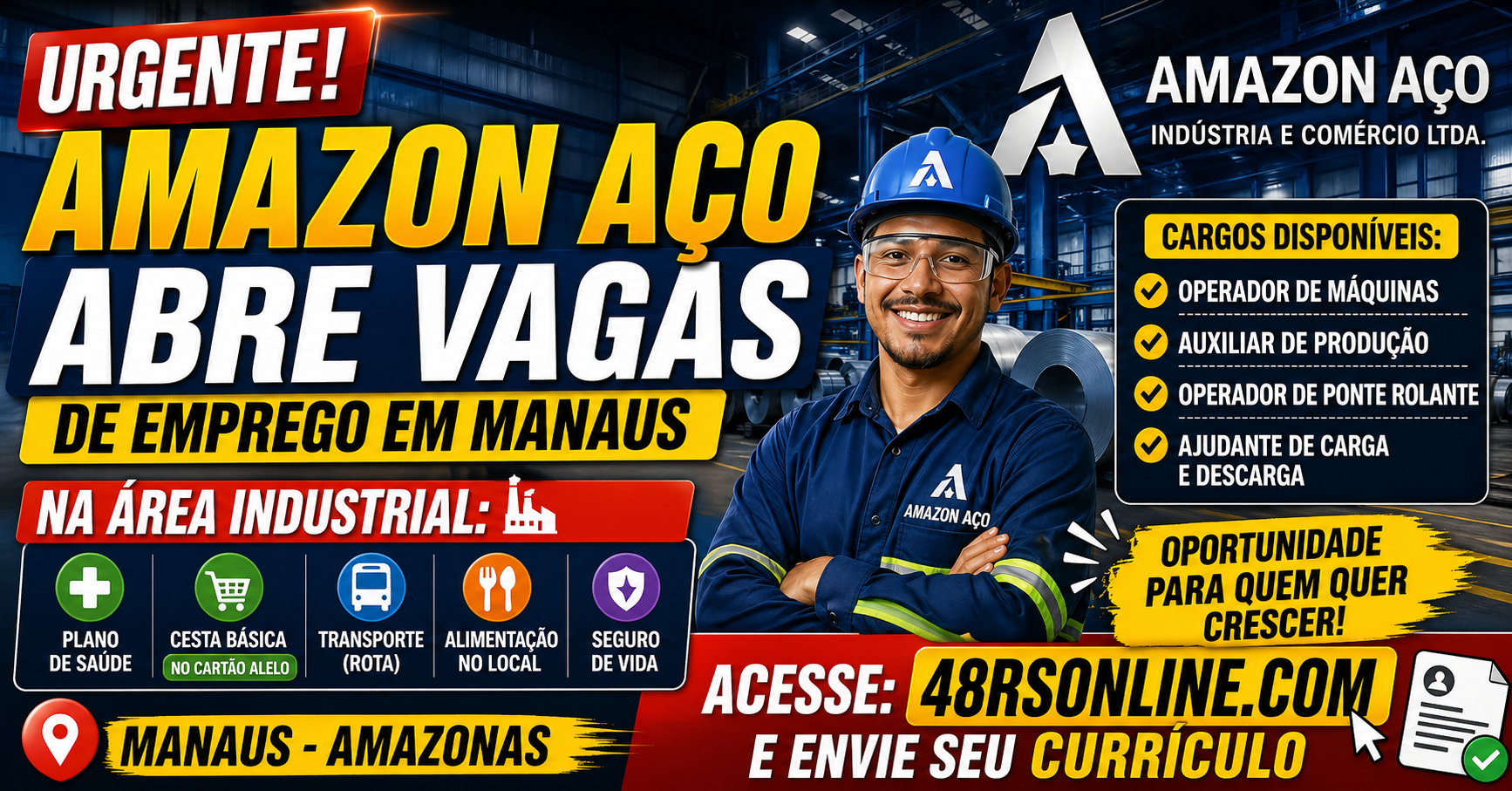A busca por vagas de emprego em Manaus continua movimentando milhares de pessoas todos os dias. Dessa vez, a Amazon Aço Indústria e Comércio Ltda. anunciou novas oportunidades para profissionais que desejam trabalhar no setor industrial. As vagas são para áreas operacionais e podem ser uma grande chance para quem deseja entrar no mercado ou conquistar mais estabilidade.