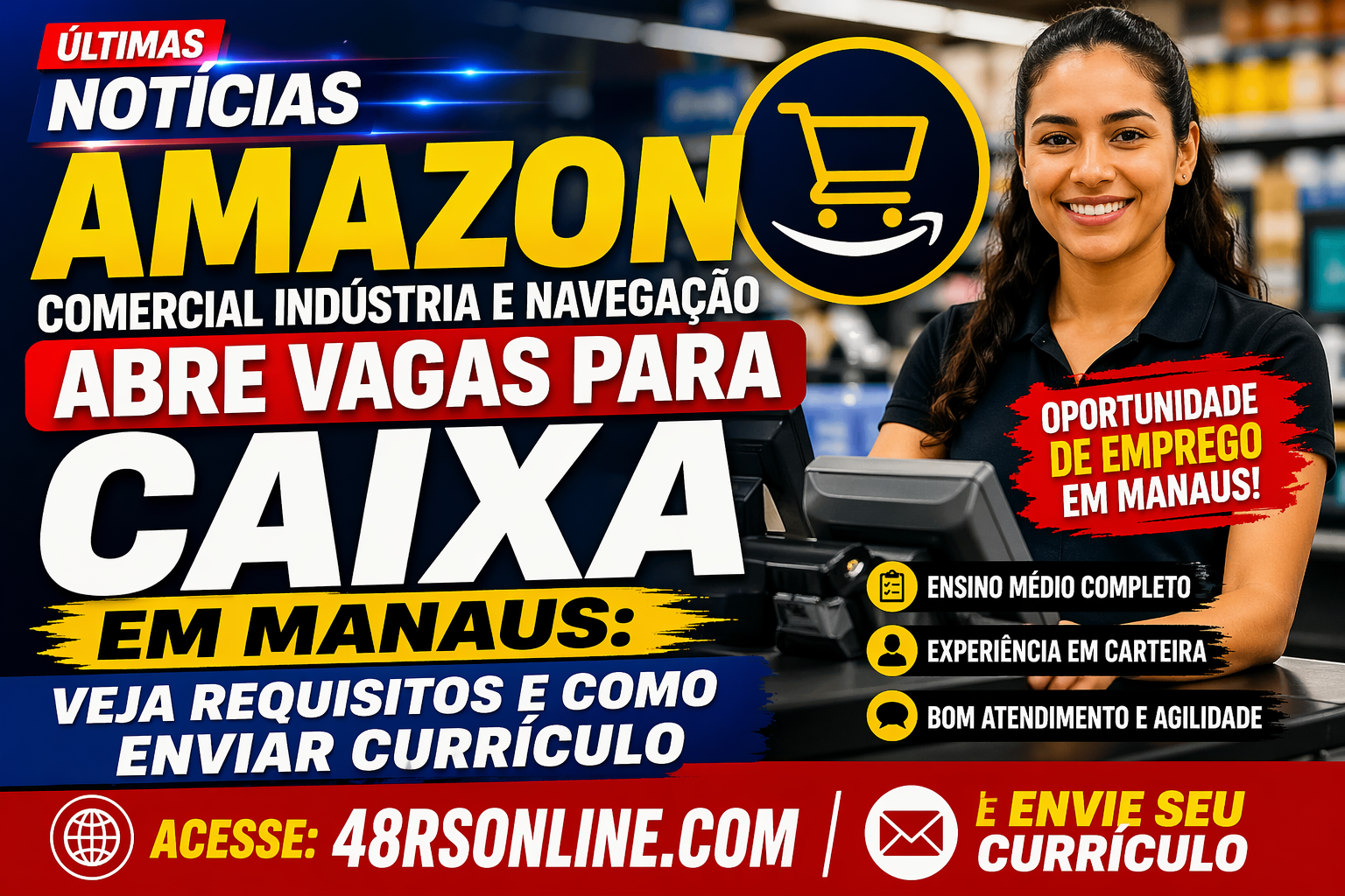 A empresa Amazon Comercial Indústria e Navegação está contratando para o cargo de Caixa em Manaus. Confira requisitos, funções da vaga e como enviar currículo por e-mail.