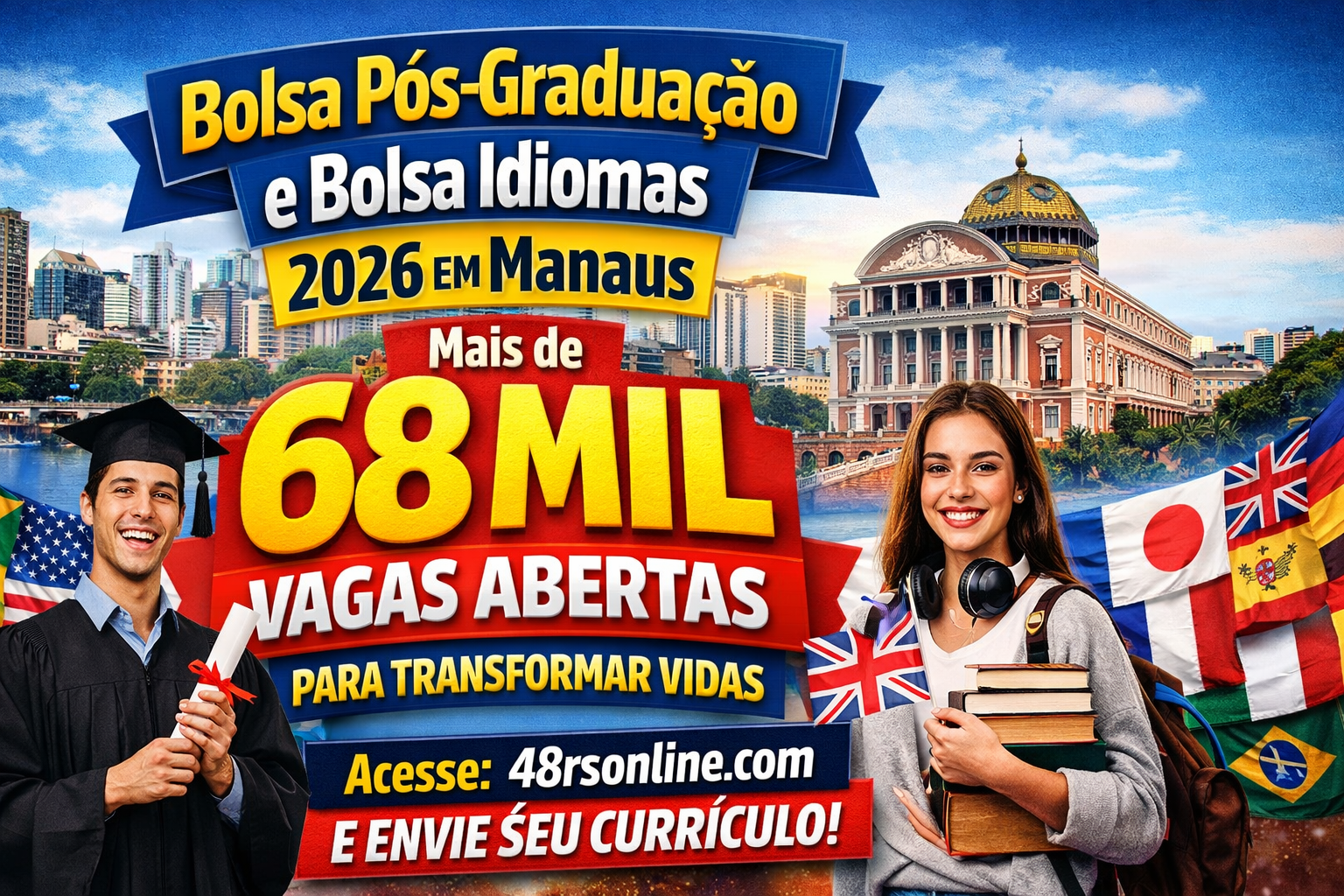 A Prefeitura de Manaus anunciou uma excelente notícia para quem deseja estudar, mas não tem condições de pagar. Ao todo, serão mais de 68 mil vagas nos programas Bolsa Pós-Graduação (PBPG) e Bolsa Idiomas (PBI) em 2026.