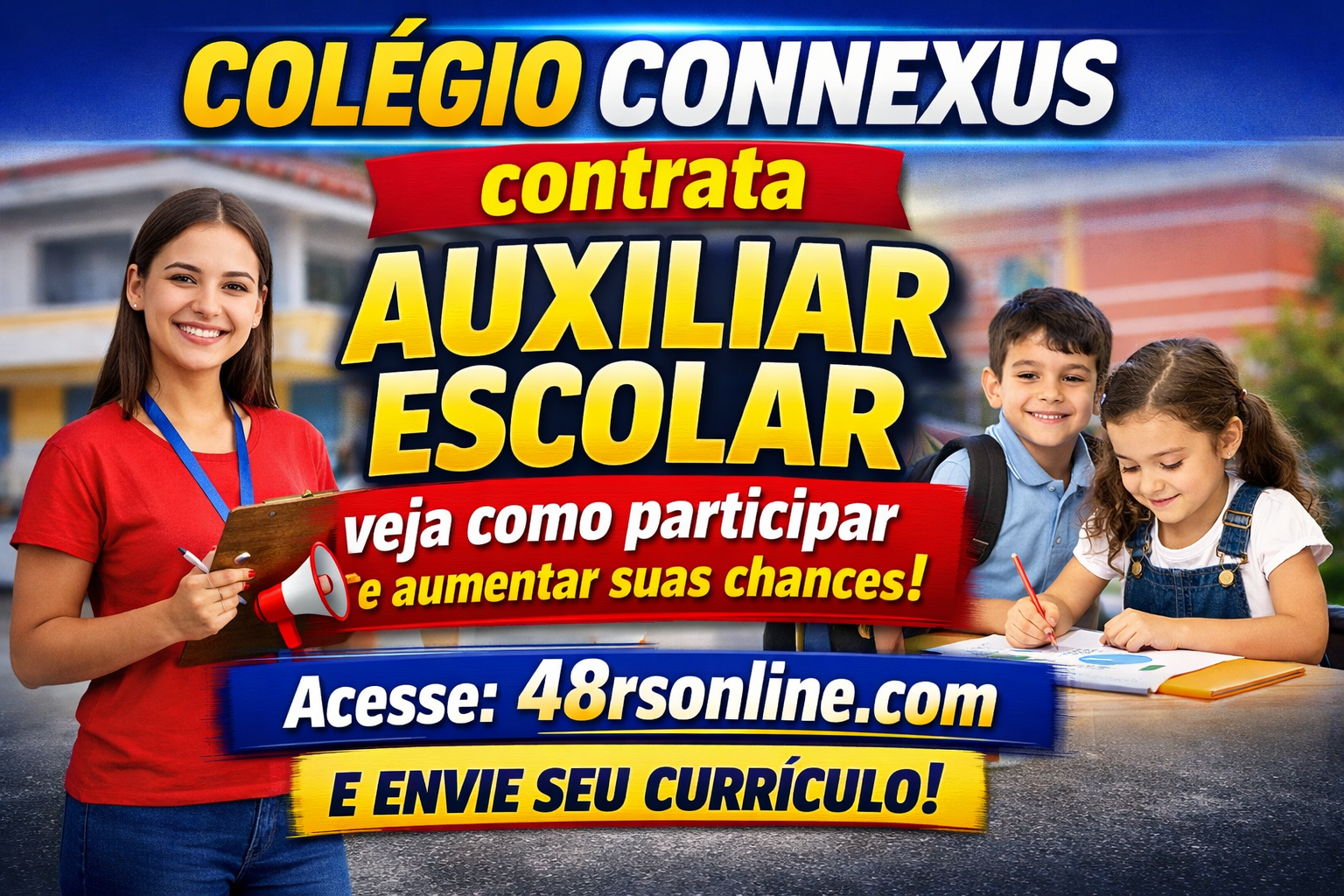 O Colégio Connexus está com oportunidade aberta para quem deseja trabalhar como Auxiliar Escolar. Essa é uma chance importante, principalmente para quem busca entrar no mercado de trabalho ou ganhar mais experiência na área da educação.