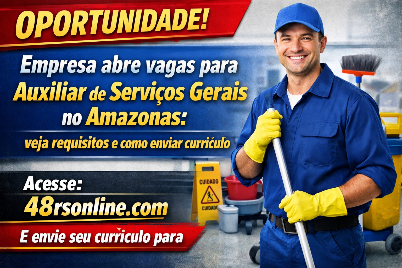 Uma empresa anunciou novas vagas de emprego no Amazonas para o cargo de Auxiliar de Serviços Gerais. Essa pode ser uma ótima chance para quem busca entrar no mercado de trabalho ou voltar a trabalhar com carteira assinada.