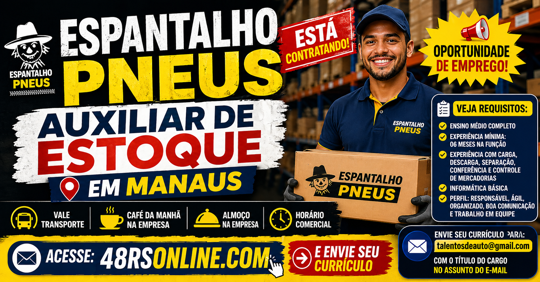 A busca por emprego em Manaus continua forte, e novas vagas surgem todos os dias. Desta vez, a Espantalho Pneus anunciou uma oportunidade para quem deseja trabalhar como Auxiliar de Estoque. Essa pode ser uma grande chance para quem tem ensino médio completo e quer entrar ou crescer na área logística.