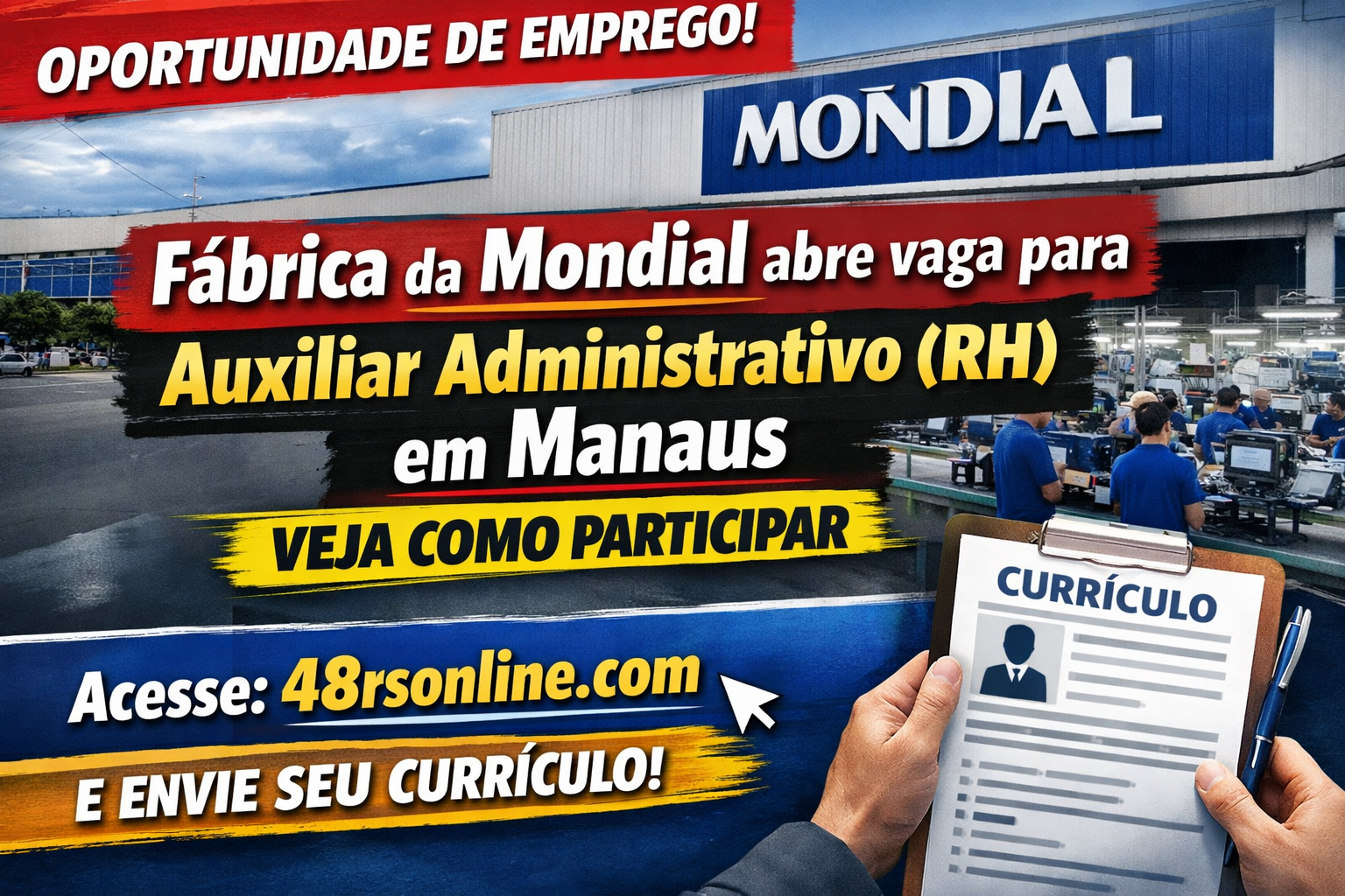 Vaga aberta na Mondial em Manaus para Auxiliar Administrativo (RH). Veja requisitos, funções, como se candidatar e dicas simples para conseguir a vaga.
