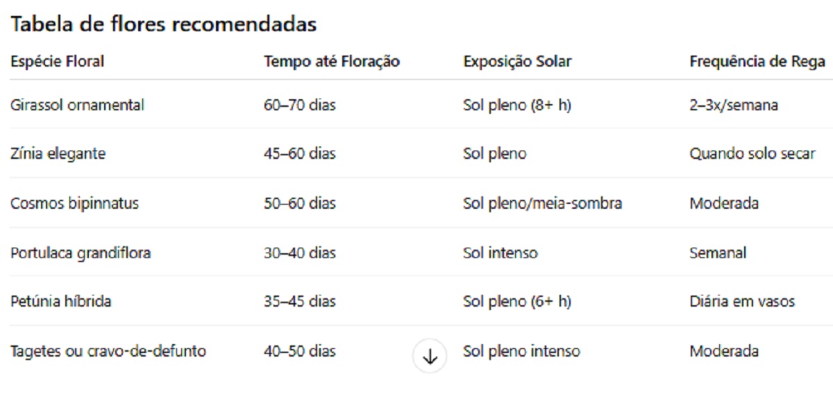 - Germinação rápida e floração precoce: algumas flores florescem em menos de dois meses.
