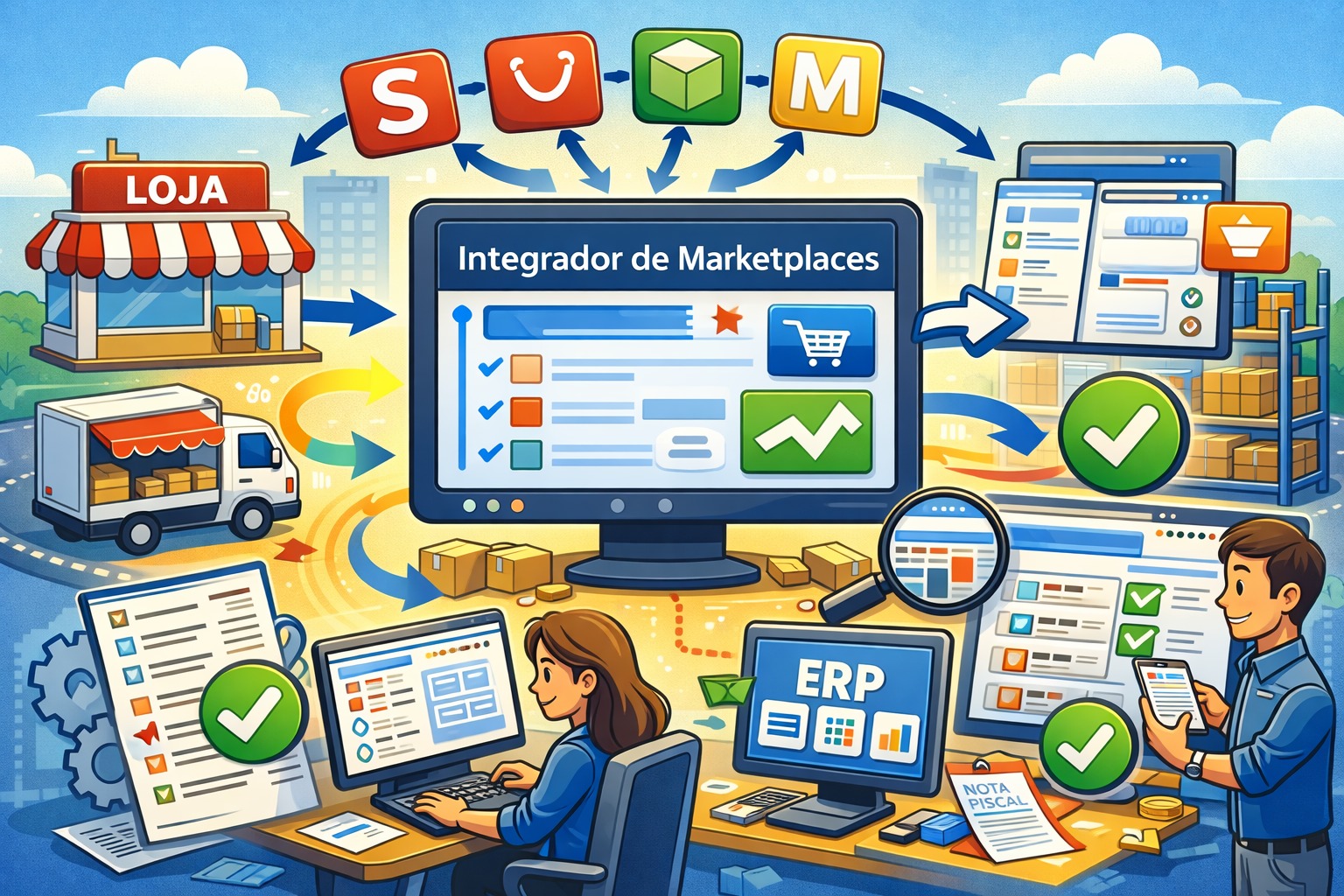 O ganho mais visível de um integrador de marketplaces é transformar uma operação fragmentada em um fluxo previsível. As principais vantagens aparecem em quatro frentes.