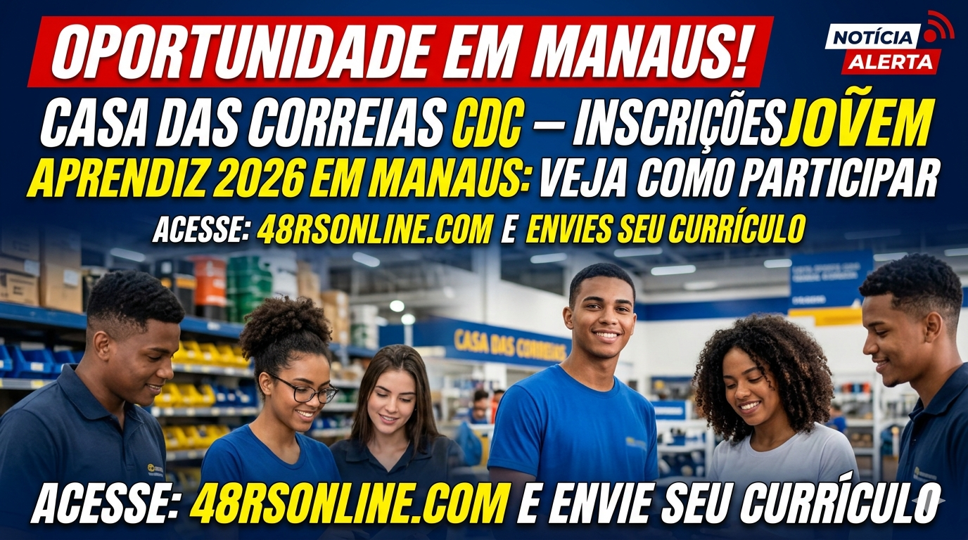 A Casa das Correias (CDC) está com inscrições abertas para o programa Jovem Aprendiz 2026 em Manaus, trazendo uma grande oportunidade para jovens que desejam dar o primeiro passo no mercado de trabalho. Além disso, essa é uma chance real de aprender uma profissão, ganhar experiência e começar a construir um futuro melhor.