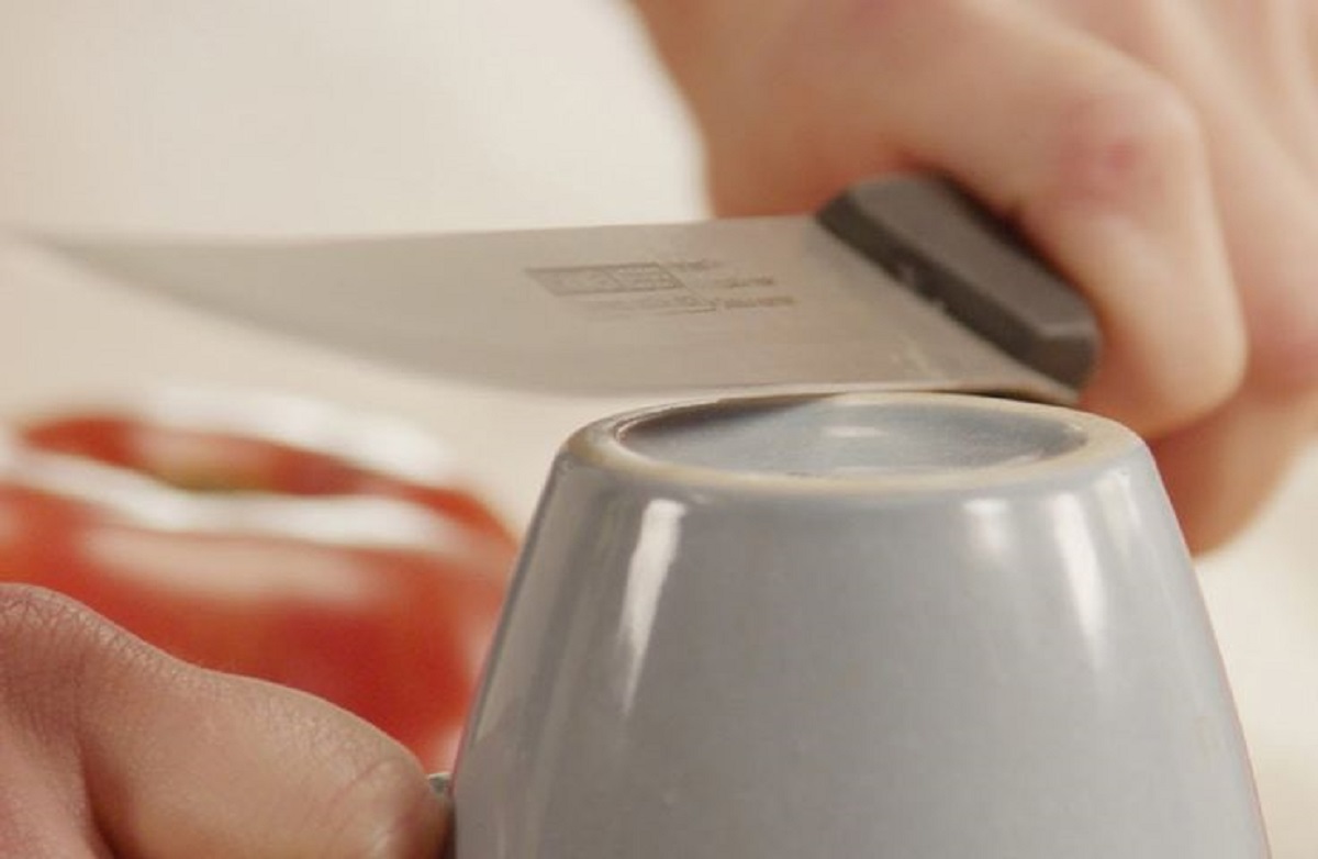 Se você pensou em substituir aquela faca que já não corta nada ou cogitou comprar um afiador caro, experimente afiá-la com uma caneca de cerâmica.
