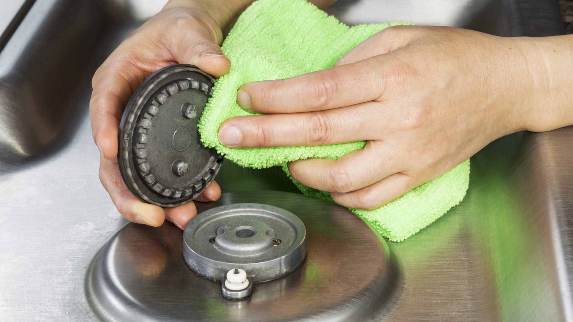 As bocas do fogão podem ser mergulhadas por 15 minutos na mistura e depois esfregadas suavemente, garantindo brilho e limpeza total.