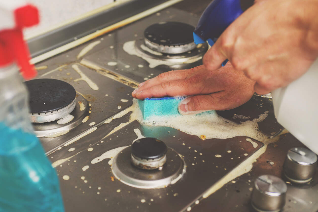 Esponjas de aço e a parte verde de esponjas comuns são inimigas do inox. Elas criam riscos que, com o tempo, tornam o fogão opaco e envelhecido.