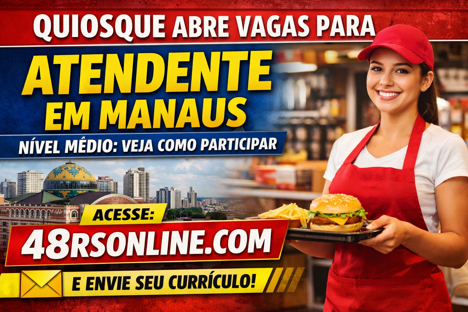 Uma nova oportunidade de emprego em Manaus está chamando a atenção de quem busca uma chance no mercado de trabalho. Um quiosque está com vagas abertas para atendente, sendo uma excelente opção para quem já tem experiência com atendimento e deseja trabalhar no setor de alimentação.
