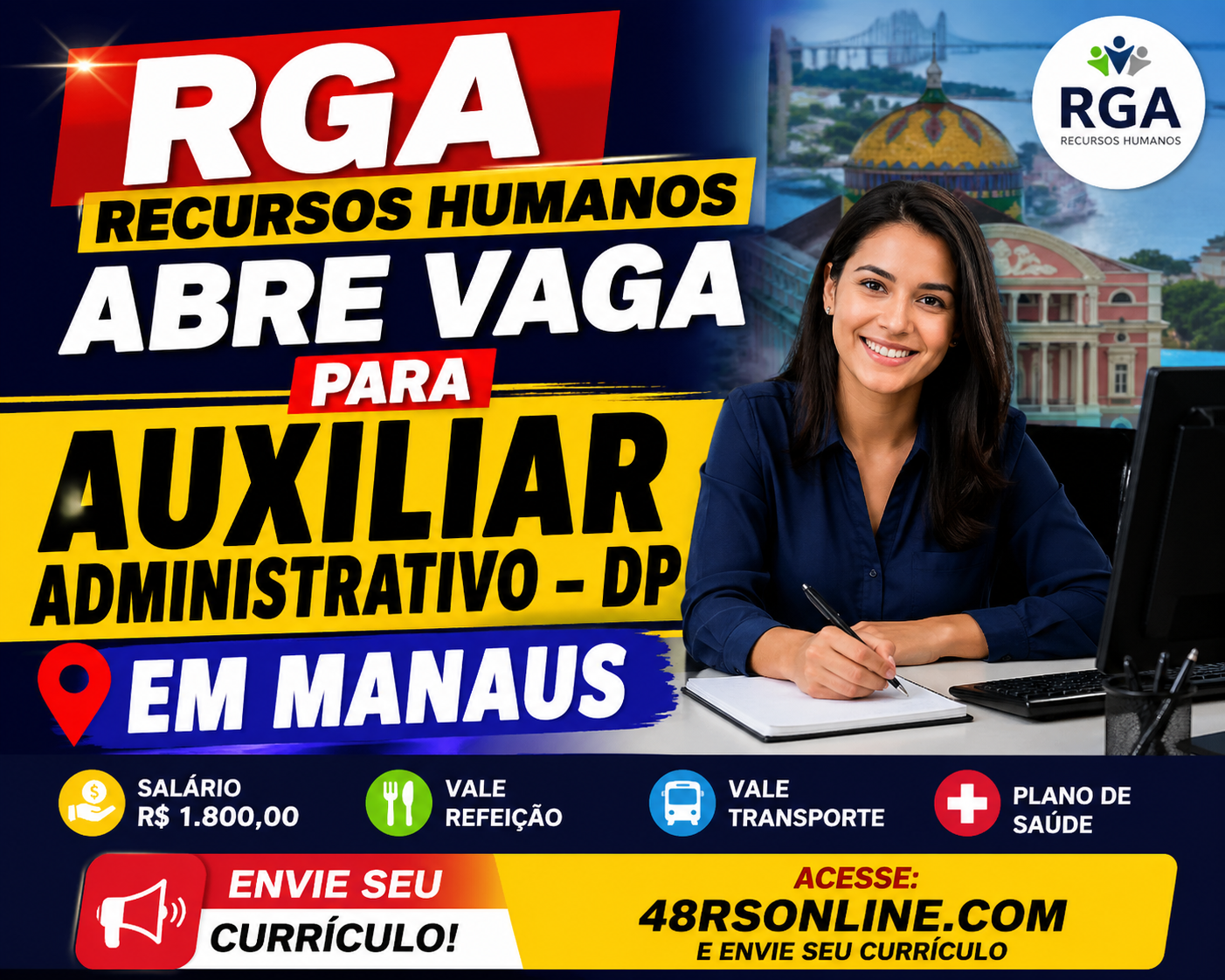 A busca por emprego em Manaus pode ser desafiadora, porém surgem oportunidades que merecem atenção especial. Dessa forma, a vaga de Auxiliar Administrativo – DP anunciada pela RGA Recursos Humanos se destaca como uma boa chance para quem deseja entrar ou crescer na área administrativa.