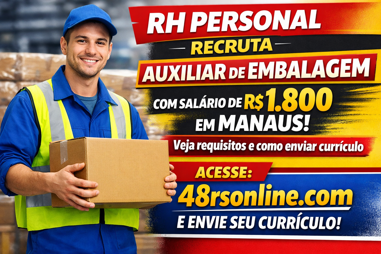 Boa notícia para quem está buscando uma chance no mercado de trabalho. A empresa RH Personal divulgou uma nova oportunidade para o cargo de Auxiliar de Embalagem em Manaus. A vaga é para atuar em uma indústria de grande porte, com contratação para início imediato.