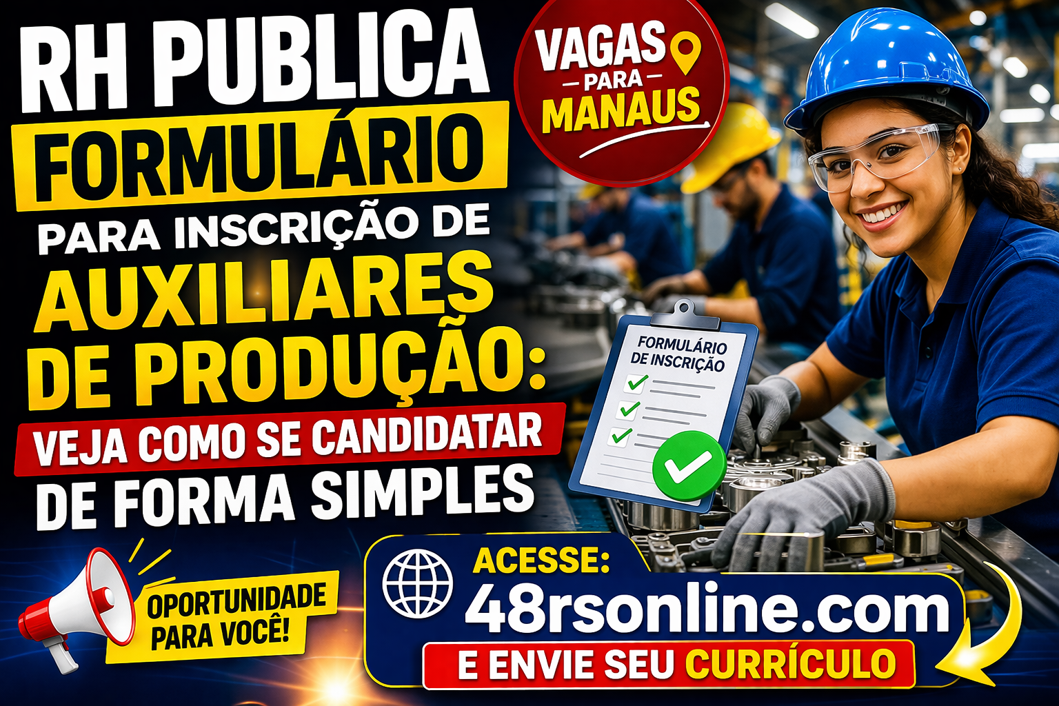 A busca por uma vaga de Auxiliar de Produção em Manaus tem crescido bastante, principalmente entre pessoas que desejam entrar no mercado de trabalho ou conquistar uma nova oportunidade. Pensando nisso, o setor de recursos humanos (RH) disponibilizou um formulário de inscrição online, facilitando o acesso dos candidatos.