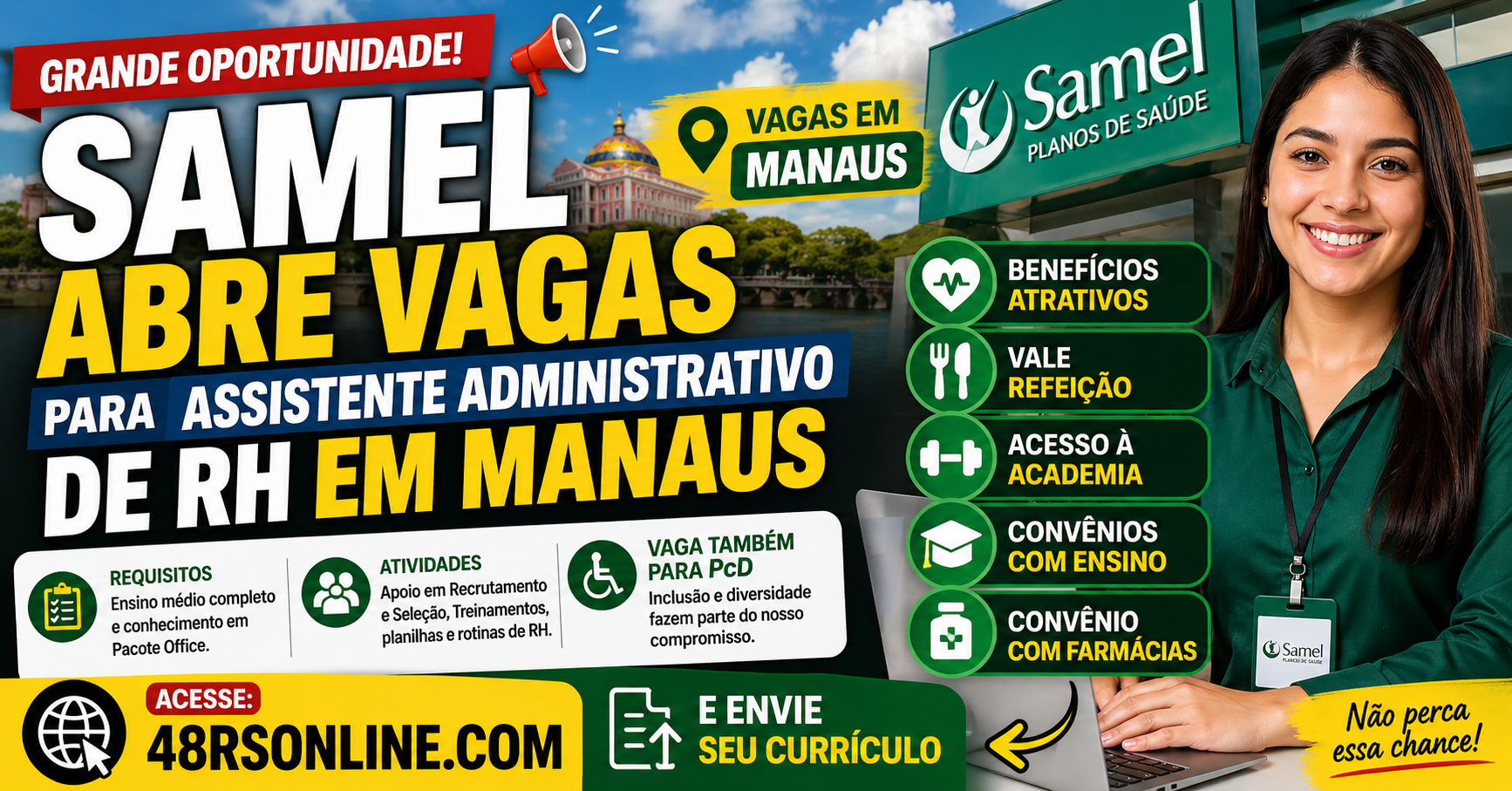 Quem está buscando vaga de emprego em Manaus pode aproveitar uma nova oportunidade anunciada pela Samel Planos de Saúde. A empresa está com seleção aberta para o cargo de Assistente Administrativo de RH, função importante dentro do setor de Recursos Humanos.