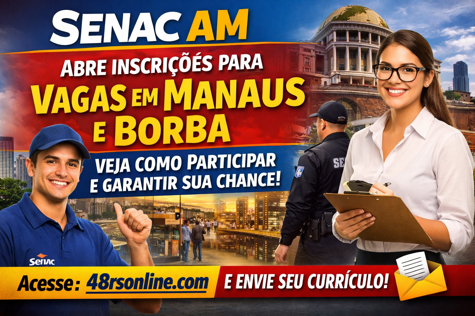 O SENAC AM vagas Manaus está com inscrições abertas para quem busca uma nova oportunidade de trabalho. Além disso, o processo seletivo também inclui vagas no município de Borba, ampliando as chances para moradores da região.