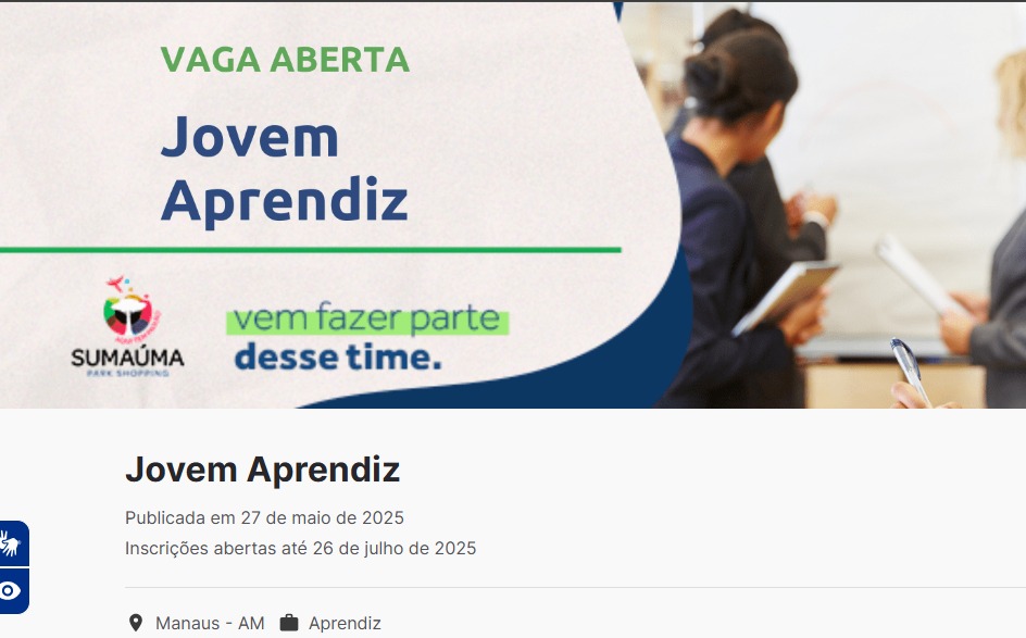 O post Sumaúma Park Shopping abre vagas de Empregos para Jovem Aprendiz apareceu primeiro em Oportunidades e Negócios.
