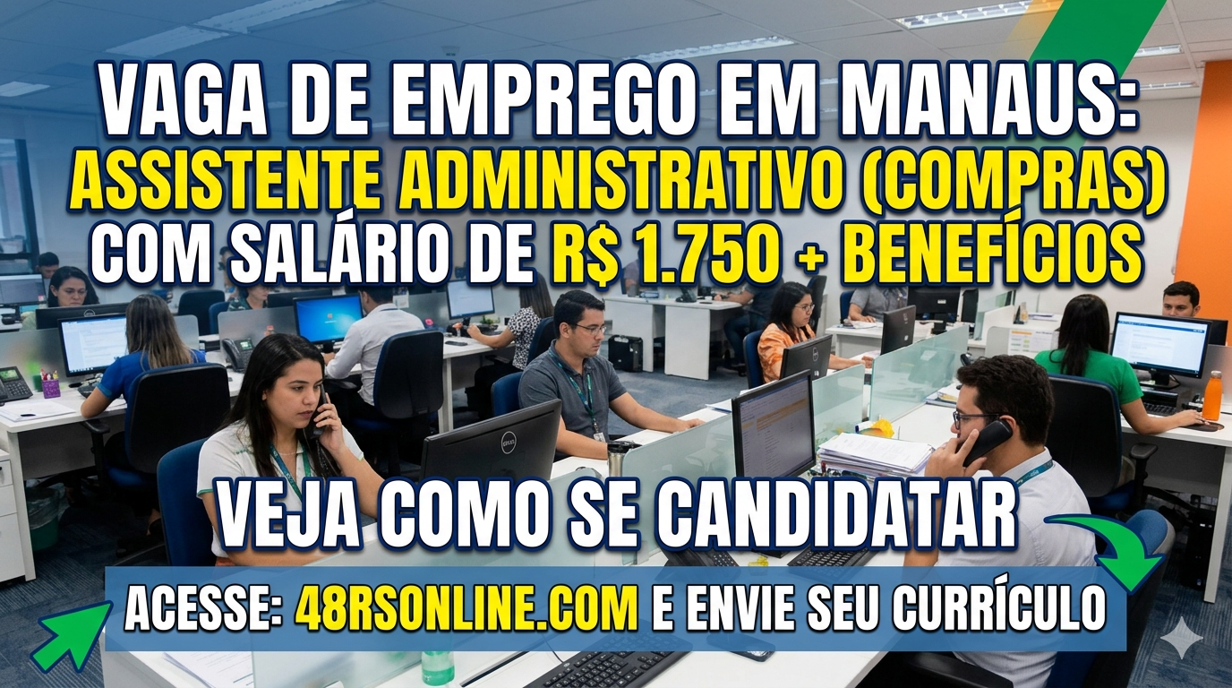 Saiba tudo sobre a vaga de Assistente Administrativo (Compras) em Manaus, com salário de R$ 1.750 + benefícios. Veja requisitos, atividades e como enviar seu currículo.