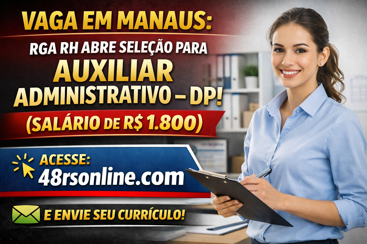 A RGA Recursos Humanos anunciou uma nova vaga de emprego em Manaus para o cargo de Auxiliar Administrativo – Departamento Pessoal (DP). Essa é uma excelente oportunidade para quem deseja entrar ou crescer na área administrativa, principalmente com foco em rotinas de escritório.