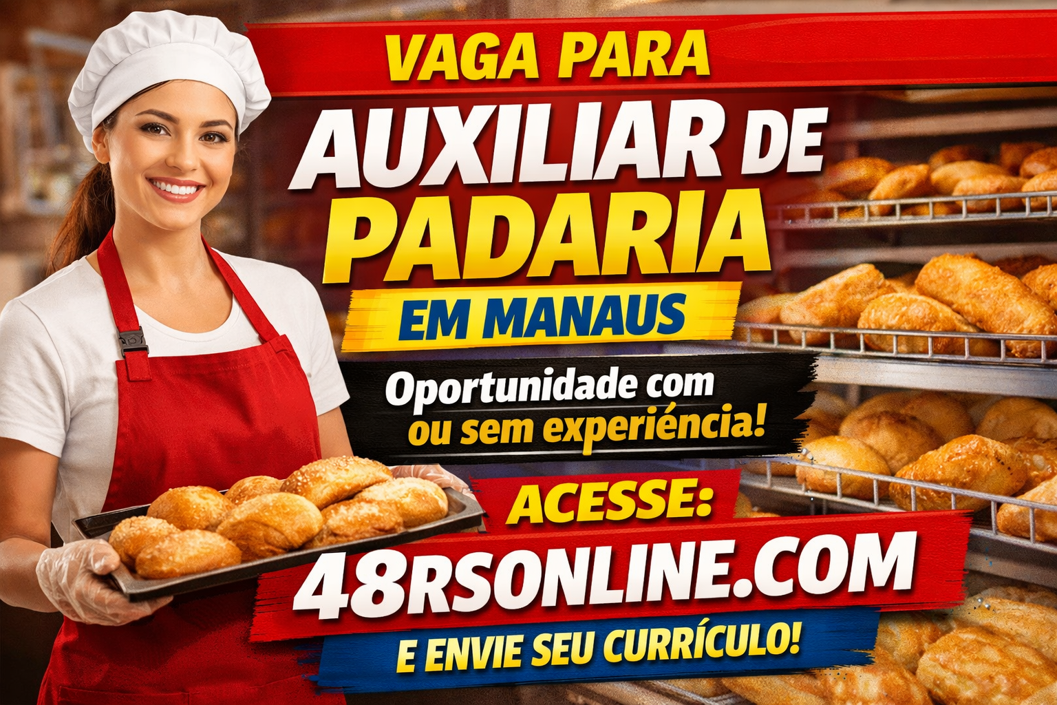 Uma das melhores partes dessa vaga de Auxiliar de Padaria em Manaus é que ela aceita candidatos com ou sem experiência.