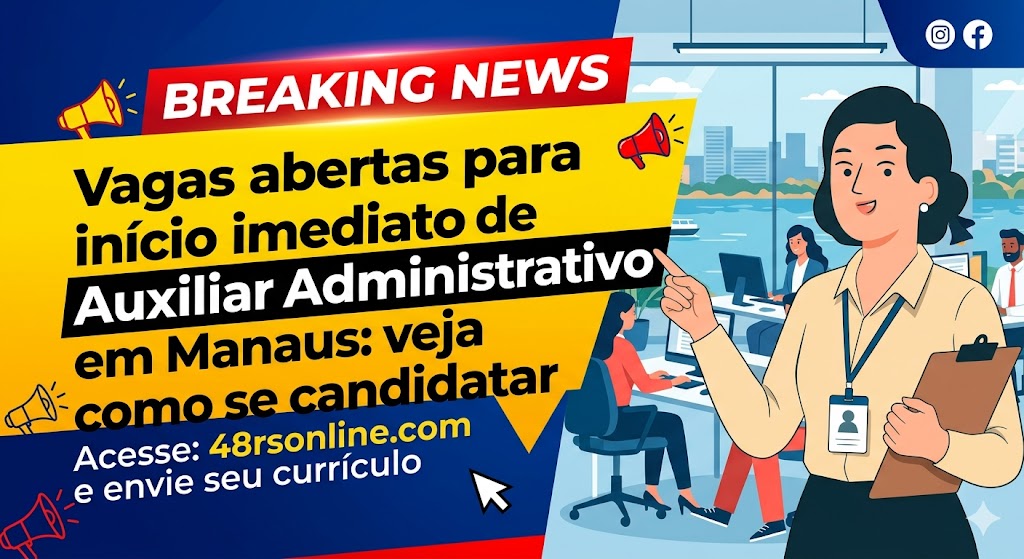 Uma nova oportunidade de emprego em Manaus está chamando a atenção de quem busca uma colocação rápida no mercado. Desta vez, uma empresa abriu processo seletivo para a função de Auxiliar Administrativo, com possibilidade de início imediato, o que é ideal para quem precisa trabalhar o quanto antes.