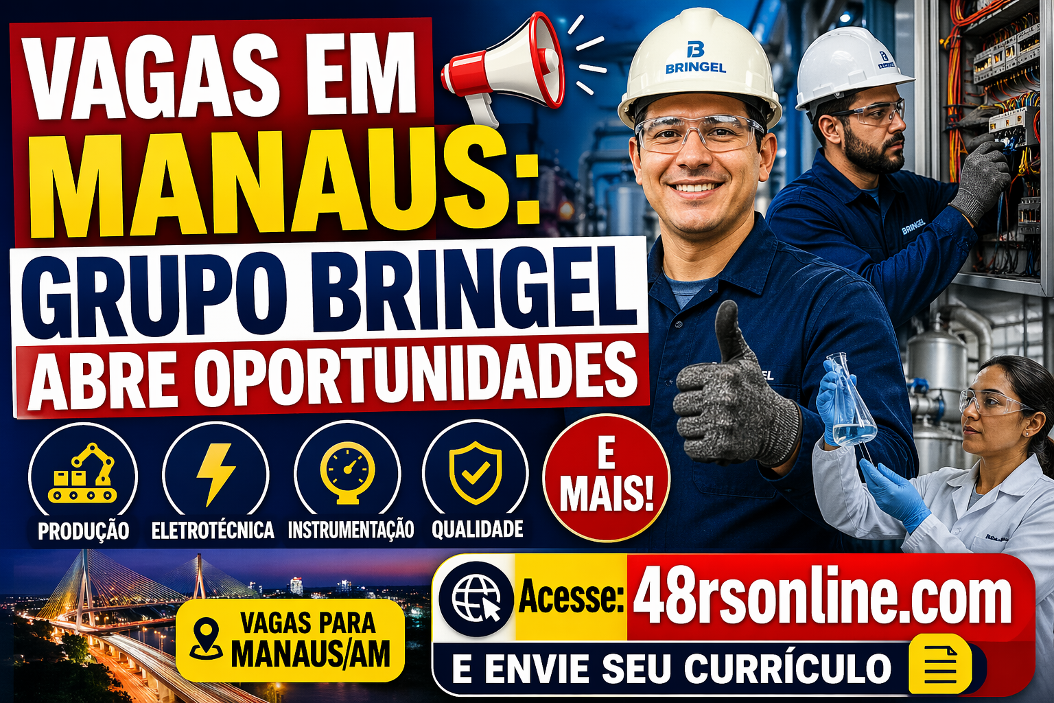 O Grupo Bringel anunciou novas vagas em Manaus para quem deseja trabalhar na área industrial. As oportunidades são para diferentes funções, o que aumenta as chances de muitas pessoas conseguirem um emprego, mesmo com formação básica ou técnica.