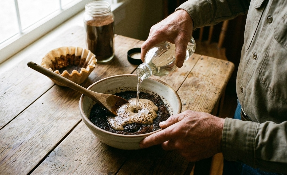 A preparação é simples e não exige medidas exatas, permitindo ajustes conforme a necessidade. O ideal é utilizar borra de café recém-usada, apenas úmida, evitando excesso de água que dificulte a aplicação.