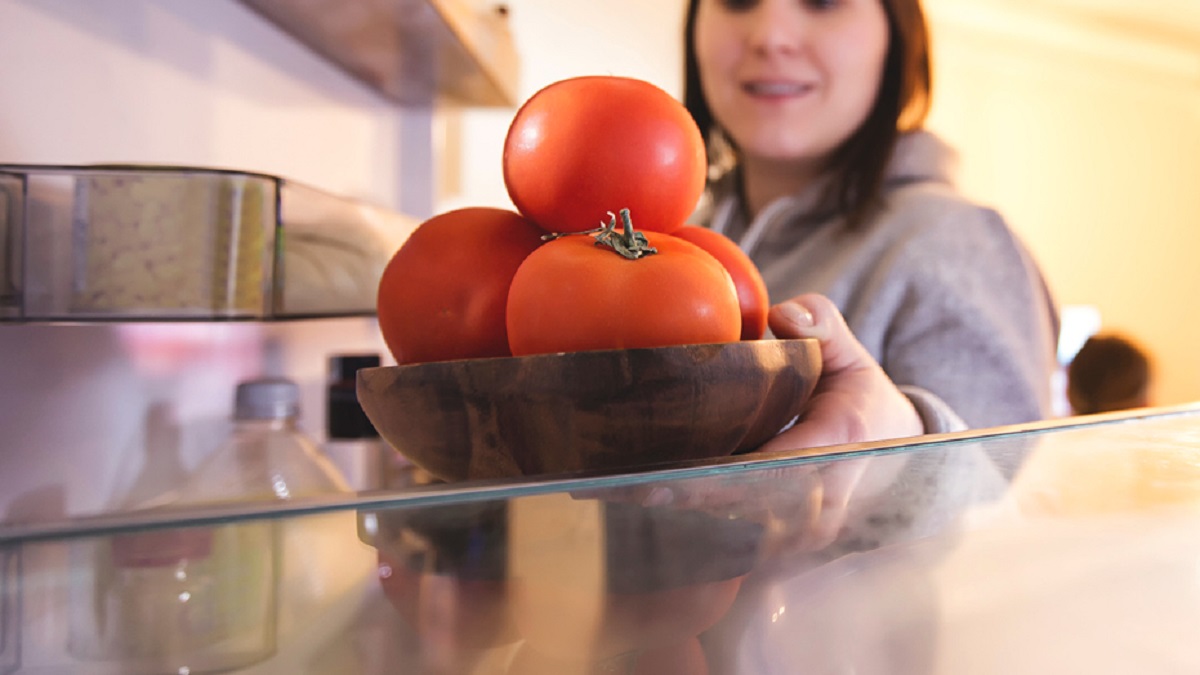 O tomate é um dos alimentos que mais sofre quando vai para a geladeira. As baixas temperaturas interrompem o processo natural de amadurecimento e degradam os compostos responsáveis pelo aroma e pelo sabor. O resultado é aquele tomate sem gosto, com textura farinácea.